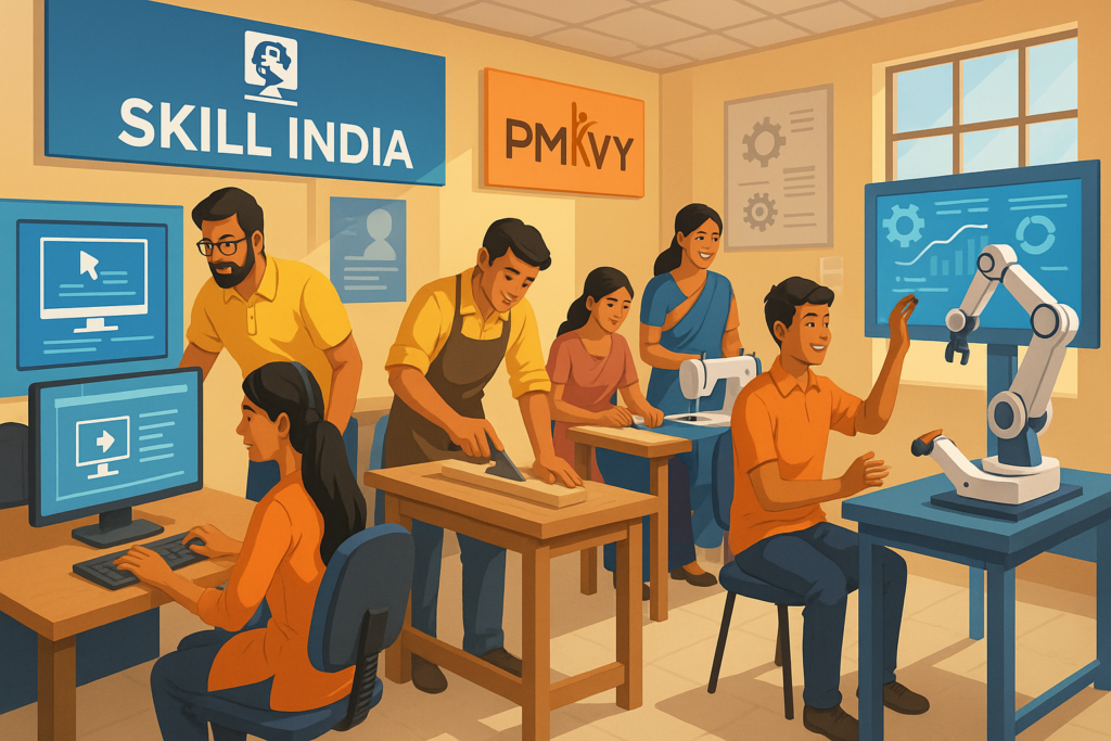 Launched July 15, 2015, Skill India Mission targets skilling 400 million youth by 2022, addressing India’s demographic dividend and industry skill requirements. Prime Minister Modi’s vision positions India as world’s human resource capital, leveraging 65% population below 35 years.