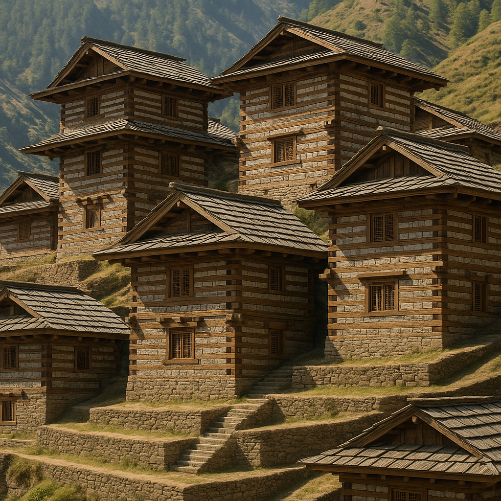 - Kath-kuni architecture (Himachal Pradesh): Wood and stone construction providing earthquake resistance and thermal efficiency