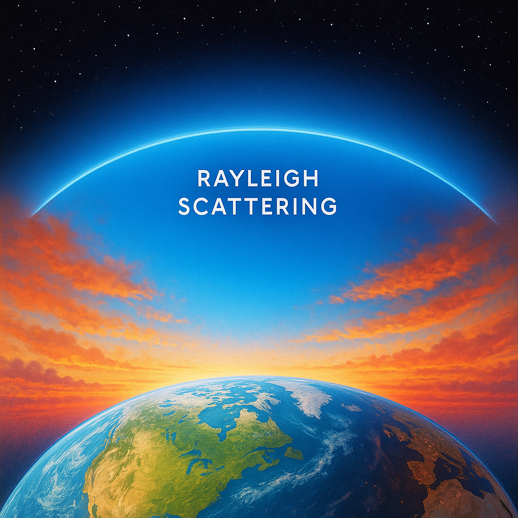 - Rayleigh scattering: Blue light scattered more than red light, creating blue skies