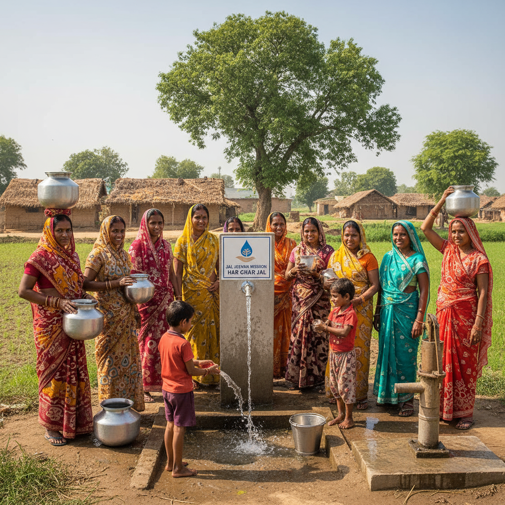 - Jal Jeevan Mission achieved 79.74% rural tap water coverage (15.44 crore households) by February 2025
