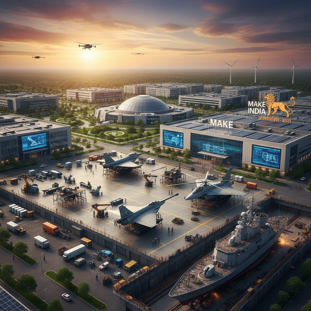 The Defence Production and Export Promotion Policy (DPEPP) 2020 targets substantial growth in domestic manufacturing, while Defence Industrial Corridors in Uttar Pradesh and Tamil Nadu provide dedicated infrastructure for defense manufacturing.