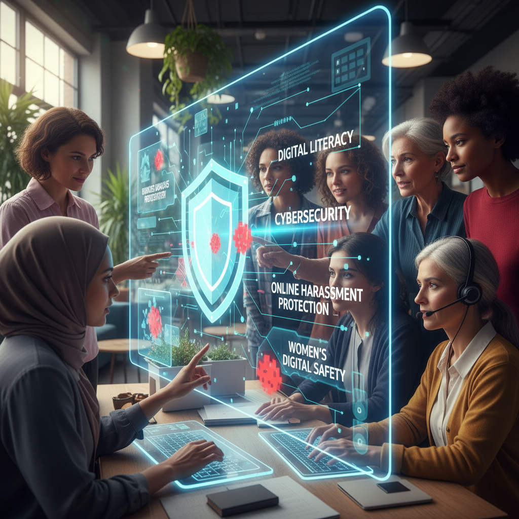 Digital literacy and cybersecurity training protecting women from online harassment and cyber threats