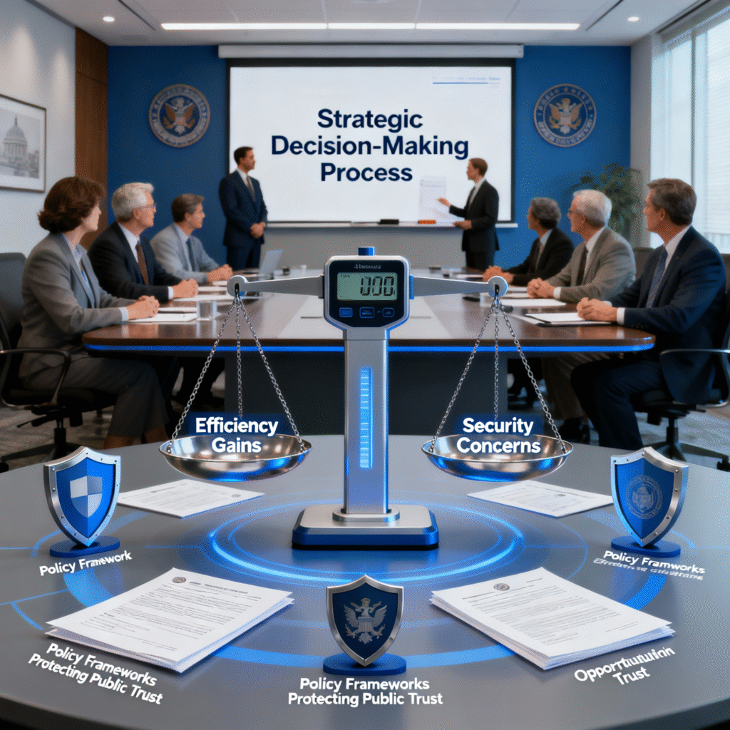 Strategic questions for government leaders and policymakers center on balancing speed with security. The pressure to deploy AI rapidly conflicts with the need for thorough testing, risk assessment, and governance framework development. Research shows that while efficiency gains initially bolster trust in AI systems, they simultaneously reduce citizens’ perceived control—when structural risks become apparent, both institutional trust and perceived control drop sharply. This “failure-by-success” dynamic suggests that early functional gains can obscure long-term risks to democratic legitimacy.