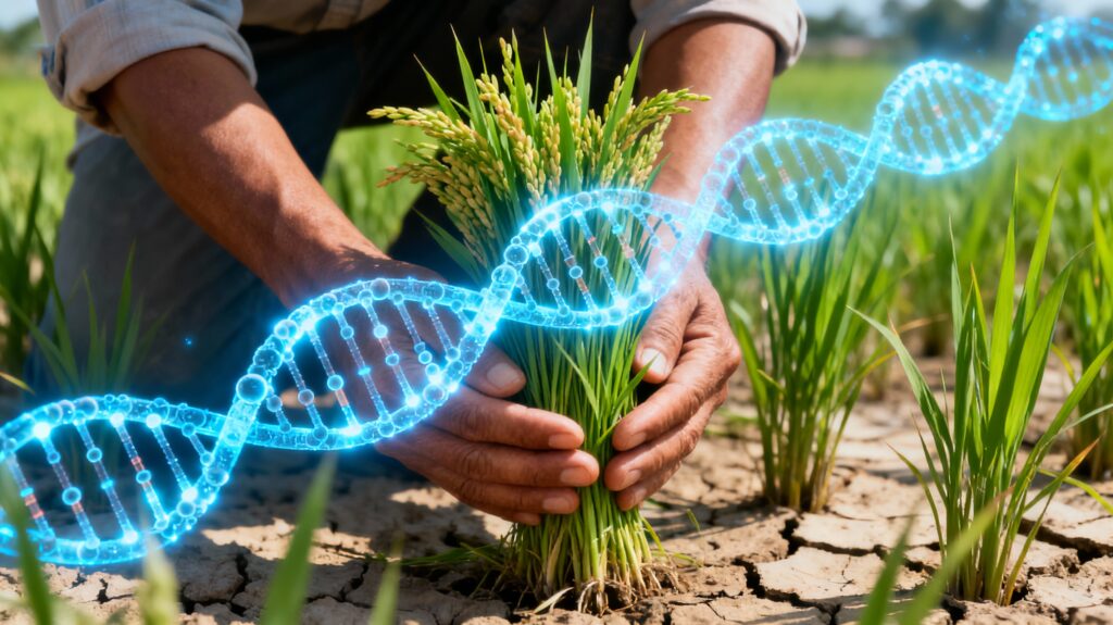 Real-World Impact: Genome-edited rice varieties like DRR Dhan 100 and Pusa DST Rice 1 developed by India’s Directorate of Rice Research demonstrate these principles at scale, with field trials showing enhanced resilience in India’s water-stressed regions.