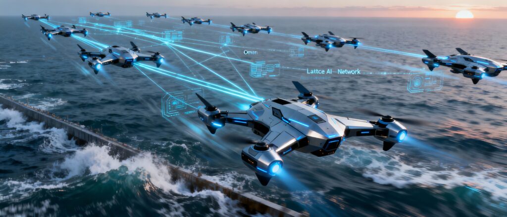 Lattice enables multiple Omen aircraft to autonomously coordinate flight paths, share sensor data, and adapt behavior in real time without human operator intervention. This creates unprecedented tactical advantages:​​