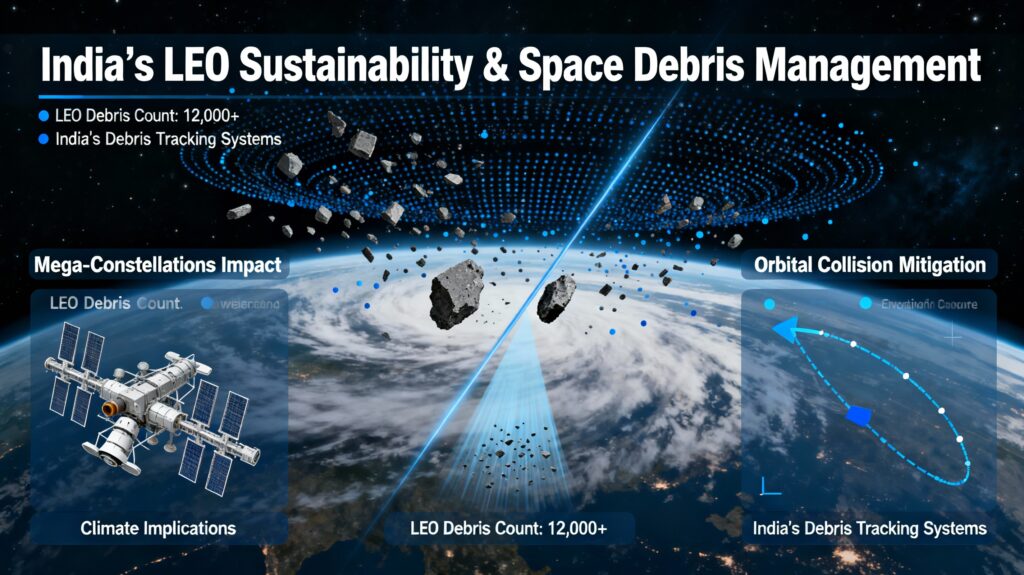 Policy implication for India: India should champion binding international norms through COPUOS (UN Committee on Peaceful Uses of Outer Space) and IADC, ensuring LEO remains a sustainable commons, not an exploited frontier.