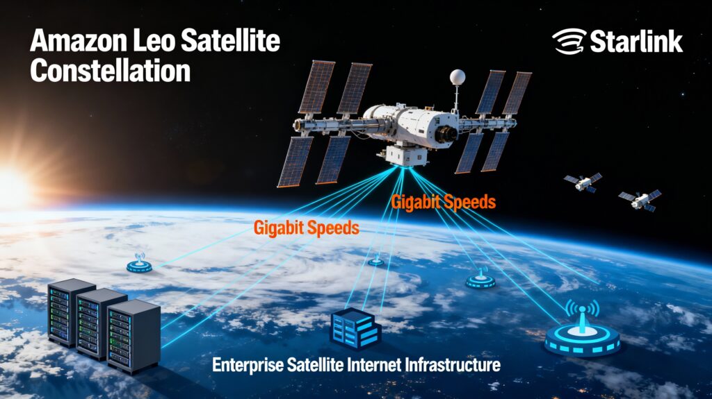 • Amazon Leo vs Starlink Competition: Amazon Leo delivers up to 1 Gbps download speeds and 400 Mbps uploads via the Leo Ultra terminal, directly challenging Starlink’s proven network across 100+ countries.​