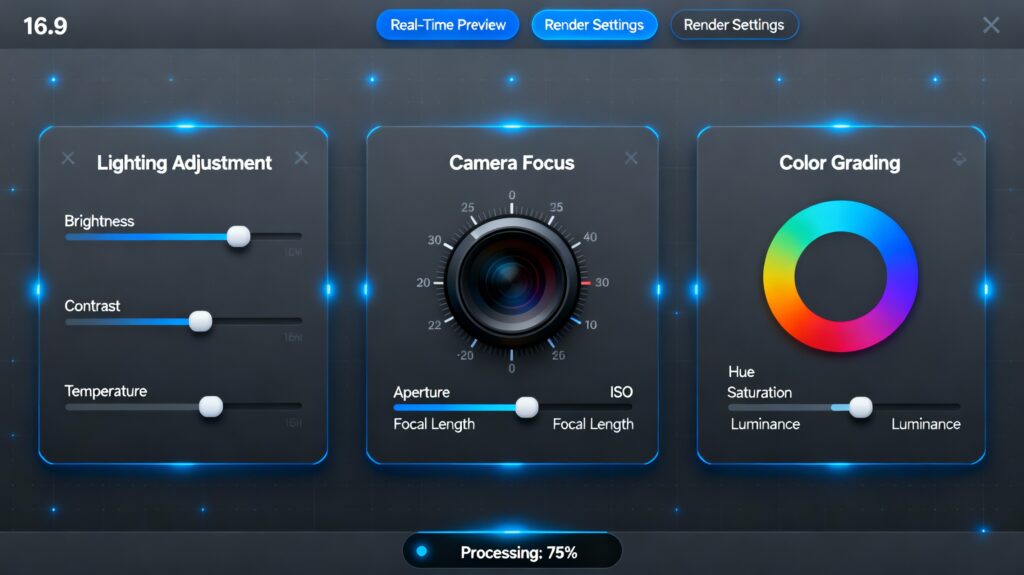 - Camera angles – Adjust perspective and viewpoint conversationally